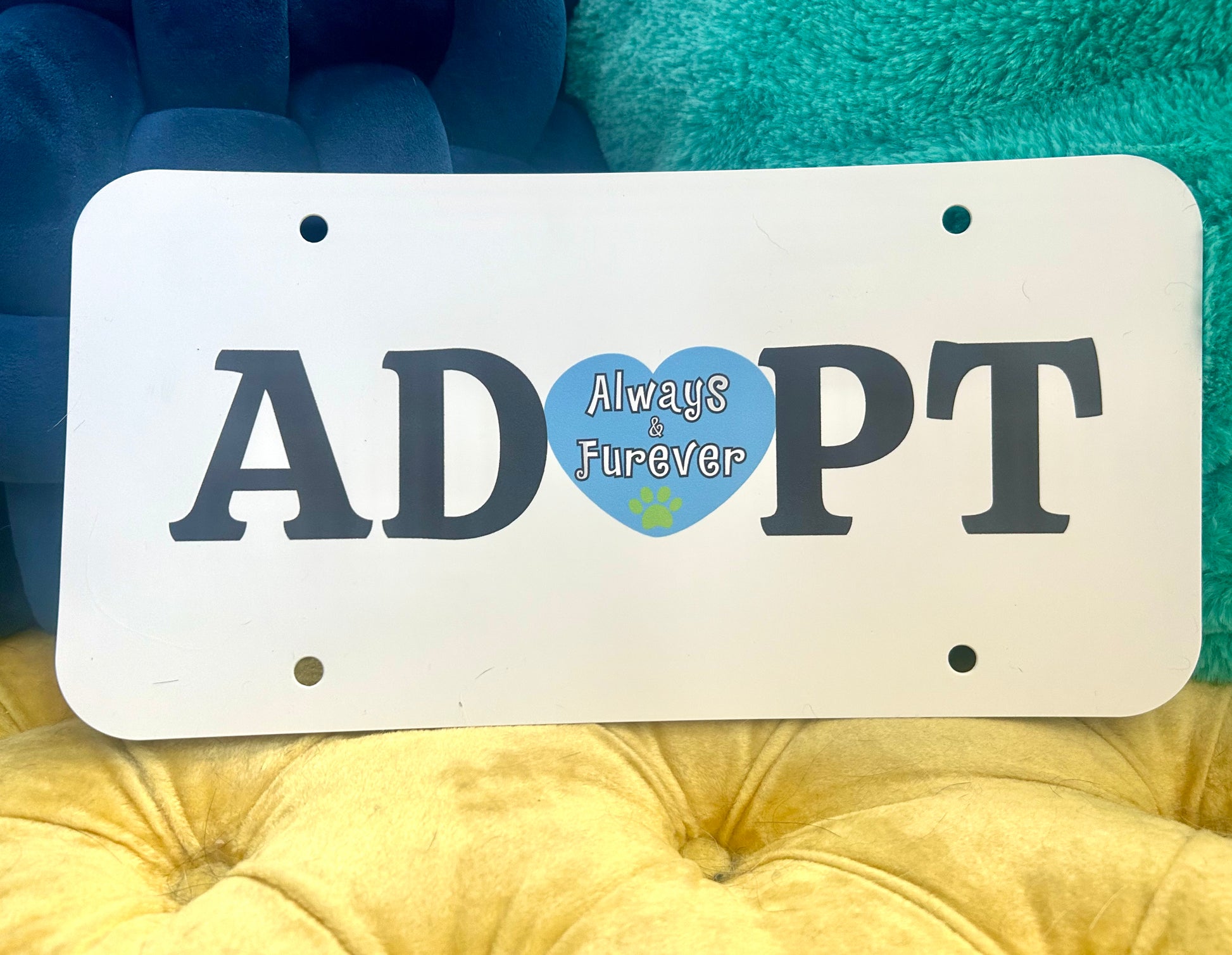Represent your favorite rescue by purchasing our super cute license plate cover! If you live in a state that doesn’t require a front license plate, then don’t leave that hole empty and proudly display our A&F “ADOPT” plate. Made of thin but durable plastic, this plate will have heads turning while promoting the saving of more animal lives!
